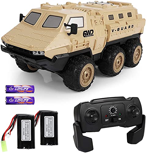 - [ Remote Control Army Toy Suitable for Kids ]: 1/16 All Terrain RC military trucks with load capacity and powerful dual motor, has a strong ability to climb on the lawn, beach, rocks and other complex terrains. Suitable for child 6-14.