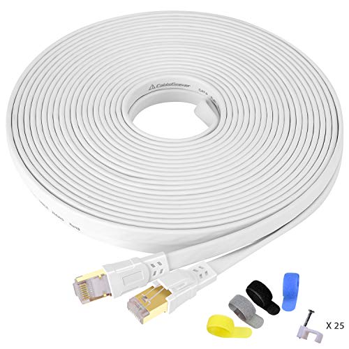 Consumer Reviews Cat 8 Ethernet Cable, Flat Network LAN Cable 50 ft Shielded, 26AWG 40Gbps 2000Mhz - Cat8 High Speed Rj45 Cord Support Cat5/Cat6/Cat7 - White